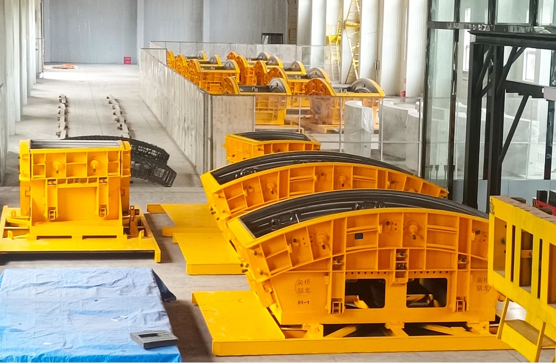為高質(zhì)量高效率生產(chǎn)軌道交通用混凝土構(gòu)件,致力于自動(dòng)化、智能化生產(chǎn),銀龍采用自主研發(fā)和與諸多科研院所合作模式,相繼研發(fā)成功高鐵軌道板自動(dòng)化生產(chǎn)線、軌枕自動(dòng)化生產(chǎn)線、盾構(gòu)管片自動(dòng)化生產(chǎn)線、重載運(yùn)輸AGV、軌道板3D檢測(cè)系統(tǒng)、自動(dòng)清理模具、自動(dòng)噴灑脫模劑、自動(dòng)安裝預(yù)埋套管、自動(dòng)張拉、自動(dòng)養(yǎng)護(hù)、自動(dòng)放張等自動(dòng)化、信息化裝備。在保障銀龍自身軌道混凝土構(gòu)件產(chǎn)業(yè)發(fā)展同時(shí),并向國(guó)內(nèi)外供應(yīng)整套生產(chǎn)線和裝備。