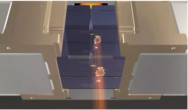 Halcyon創(chuàng)造性地配備了瓦里安獨(dú)有的“雙子星”雙層高速多葉準(zhǔn)直器系統(tǒng),該系統(tǒng)采用雙層交錯式設(shè)計,漏射率非常低。另外,上下兩層葉片可以一對一相互跟隨,這樣讓靶區(qū)邊界的劑量更低了。通過這些創(chuàng)新設(shè)計,Halcyon在計劃質(zhì)量上有很大的提升。