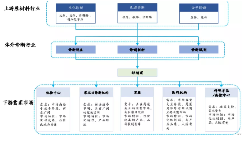 (3)試劑開發(fā)系列化:體外診斷的產(chǎn)品向系列化發(fā)展,從疾病預(yù)防、早期篩查到臨床診斷再到療效檢測最后到預(yù)后判斷。不再局限于臨床診斷,開始向上下游不斷擴展,形成系列產(chǎn)品。如針對孕婦群體的孕前檢查、孕期檢查、后期檢測等。
