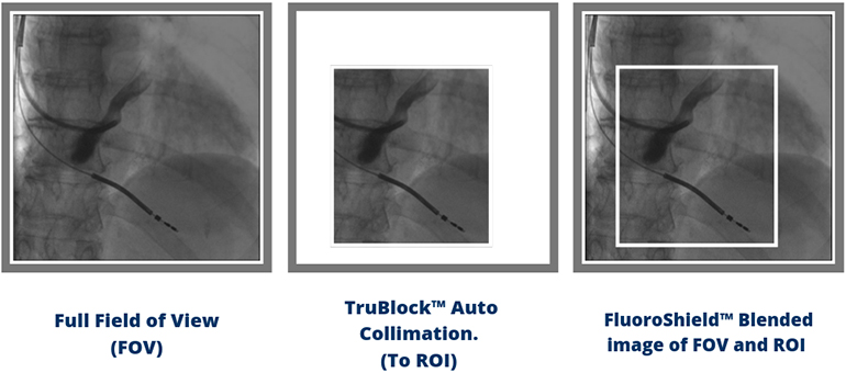 在進(jìn)行介入程序期間,F(xiàn)luoroShield會(huì)利用熒光或電影(跳動(dòng)的心臟的X射線(xiàn)短片)成像自動(dòng)將輻射束對(duì)準(zhǔn)目標(biāo)區(qū)域。這要?dú)w功于歐米茄的TruBlock自動(dòng)準(zhǔn)直技術(shù)。