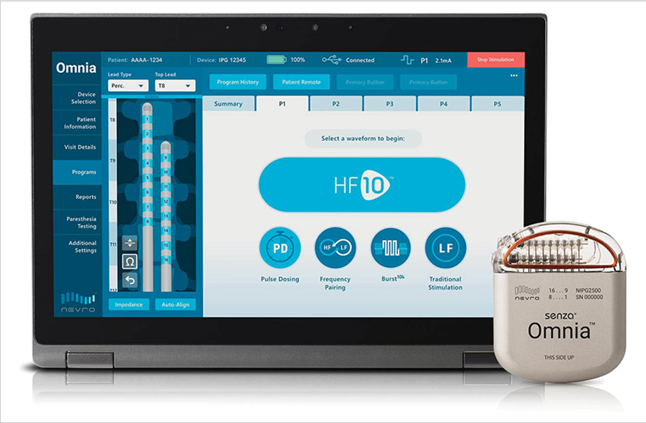Nevro是一家位于硅谷的公司,其用于慢性疼痛管理的Senza Omnia脊髓神經(jīng)刺激系統(tǒng)贏得了FDA的批準(zhǔn)。該設(shè)備可以提供低于1.5 kHz頻率的傳統(tǒng)脊髓刺激,以及Nevro專有的高達(dá)10 kHz的HF10刺激。低頻和高頻療法甚至可以同時(shí)提供。