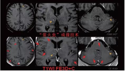 此技術(shù)主要用于神經(jīng)系統(tǒng)惡性腫瘤,以及其他腫瘤腦轉(zhuǎn)移瘤篩查。傳統(tǒng)情況下做腫瘤腦轉(zhuǎn)移篩查,很容易漏掉5mm以下小病灶,臨床發(fā)現(xiàn)后干預(yù)治療比較晚,要實(shí)現(xiàn)2mm高空間分辨率和超薄層全腦掃描在保證信噪比的情況下需要很長時(shí)間大概十多分鐘,而且薄層增強(qiáng)序列顱內(nèi)血管呈高亮信號(hào),會(huì)干擾顱內(nèi)小病灶的觀察,血管和小病灶區(qū)分困難。佳能”螢火蟲”成像技術(shù)既可以實(shí)現(xiàn)高空間分辨率和超薄層(最薄可實(shí)現(xiàn)0.2mm)全腦掃描,掃描時(shí)間短,2-3分鐘即可實(shí)現(xiàn)全腦3D掃描,同時(shí)避免了血管高亮信號(hào)的干擾,對(duì)顱內(nèi)原發(fā)或繼發(fā)的微小腫瘤檢查有重大意義。“螢火蟲”成像技術(shù)具有磁敏感效應(yīng),對(duì)于亞急性血敏感敏感,可以區(qū)分出血和強(qiáng)化的腫瘤。