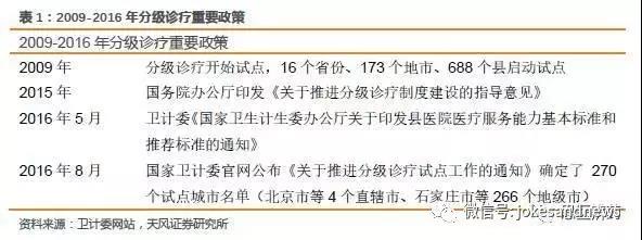 2009年國家開始嘗試分級(jí)診療,各地區(qū)進(jìn)行小范圍試點(diǎn),但效果相對(duì)不明顯。2016年分級(jí)診療作為一個(gè)重要的民生課題又被持續(xù)推上風(fēng)口浪尖,各種政策密集出臺(tái)。