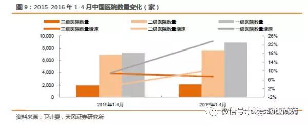 注:2015年醫(yī)院數(shù)量衛(wèi)計(jì)委只有1-11月數(shù)據(jù),但不影響整體趨勢(shì)和判斷。