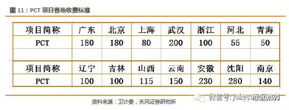 按照購買力平價(jià),PCT項(xiàng)目在中國收費(fèi)為50比較合理。最早進(jìn)口品牌進(jìn)入中國,一般先進(jìn)入經(jīng)濟(jì)相對(duì)發(fā)達(dá),人口密集的大省,因此最早的價(jià)格多在150-200之間。2014年上海的PCT價(jià)格為100,今年已經(jīng)降為80,未來依然存在降價(jià)的趨勢(shì),并且會(huì)各個(gè)城市都會(huì)持續(xù)下調(diào)收費(fèi)。