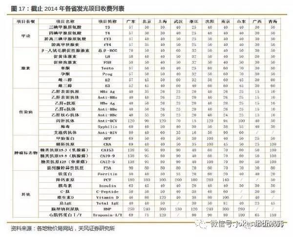 在進(jìn)口品牌進(jìn)入中國之前,各個(gè)省份沒有發(fā)光的收費(fèi)標(biāo)準(zhǔn)。最早的收費(fèi)均由進(jìn)口品牌主導(dǎo),我們查詢了美國的相同項(xiàng)目的價(jià)格,大部分項(xiàng)目均是根據(jù)美國匯率換算成收費(fèi)標(biāo)準(zhǔn)。