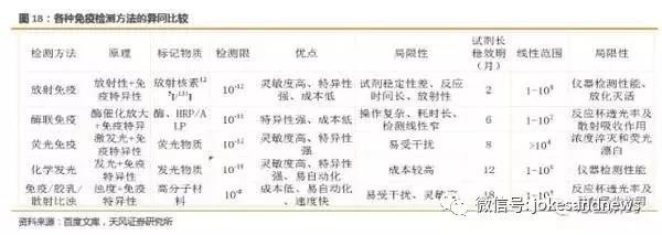 化學(xué)發(fā)光大部分項(xiàng)目為三類注冊(cè),由儀器試劑組成封閉系統(tǒng),無開放系統(tǒng),技術(shù)門檻高,準(zhǔn)入難,具有先天護(hù)城河優(yōu)勢(shì)?;瘜W(xué)發(fā)光屬于體外診斷子行業(yè)中的免疫分支,臨床免疫廣義包括以抗原抗體結(jié)合為原理的所有產(chǎn)品,包括化學(xué)發(fā)光、酶聯(lián)免疫、膠體金、放免、生化中的免疫比濁和膠乳項(xiàng)目、特種蛋白儀等。狹義的臨床免疫通常指化學(xué)發(fā)光,該名稱取決于其方法學(xué)信號(hào)檢測(cè)的特點(diǎn)。不同的免疫學(xué)方法有不同的應(yīng)用場(chǎng)景和優(yōu)劣勢(shì),具體如下表所示: