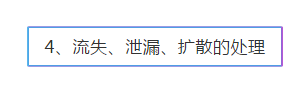 (4)采取適當(dāng)?shù)陌踩幹么胧?,?duì)泄漏物及受污染的區(qū)域、物品進(jìn)行消毒或者其他無(wú)害化處置,必要時(shí)封鎖污染區(qū)域,以防擴(kuò)大污染;