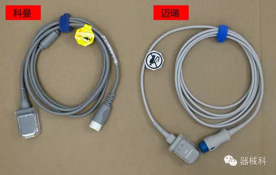 兩家都采用目前比較普遍的DB9插頭的轉接方式??坡@得沉穩(wěn),線體粗壯,線上還加了磁環(huán),抗干擾能力更強。邁瑞看起來簡潔新潮,用起來更柔軟,不知道是不是為了不影響美觀才沒有設計磁環(huán)呢?