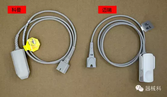 兩家使用的血氧探頭有明顯的區(qū)別。科曼的看上去更邁瑞的設計看起來新超大氣,顏色更白。不知道用久了,會不會發(fā)黃變色。看了一下探頭的發(fā)光管和接收管,居然是一樣的,從發(fā)光管和接收管的外形上看用的都是OSI的,看來在這一點上大家都比較認可這家頂級老牌生產的管子。用手指感受了一下兩家的探頭,邁瑞的選用的材料比較柔軟,在感受上比較舒適,科曼的探頭襯墊手感上要硬朗一些,不過也不會有任何的不適。