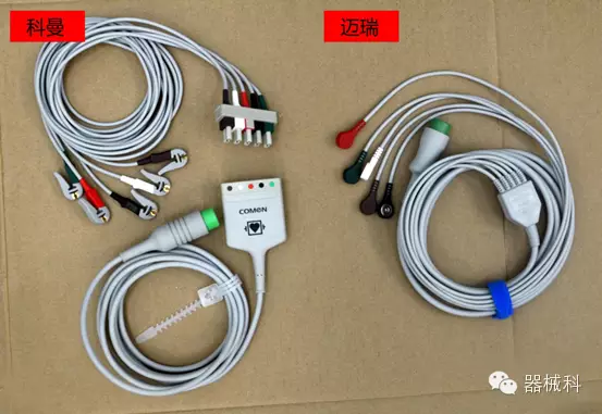 科曼采用防除顫分體夾式5導聯(lián)線,分纜長度為LA,RA,V導聯(lián)1米;RL,LL導聯(lián)1.6米;邁瑞采用防除顫一體扣式5導聯(lián),分纜統(tǒng)一為0.6米,主纜部分長度一樣。導聯(lián)線上的分纜,容易損壞。如果只是分纜換了,分體式只用換掉分纜就行了,而一體式只能換掉附件,減少不必要的浪費,提高使用率,節(jié)約成本。
