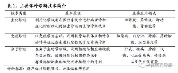 體外診斷主要分為生化診斷、免疫診斷、分子診斷、微生物診斷、凝血類診斷、組織診斷、尿液診斷、血液學(xué)和流式細胞診斷等,其中,生化診斷、免疫診斷、分子診斷是目前國內(nèi)醫(yī)療機構(gòu)的主流IVD方式。