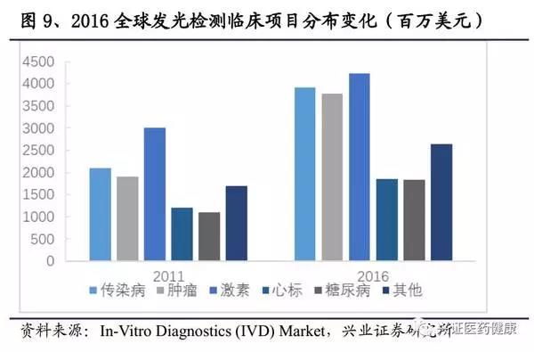 1、化學(xué)發(fā)光是IVD行業(yè)的黃金細分領(lǐng)域