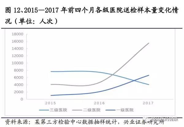 分級診療是近些年國內(nèi)醫(yī)療界的重要課題,2015年國務(wù)院發(fā)表指導(dǎo)意見,以提高基層醫(yī)療服務(wù)能力為重點,以常見病、多發(fā)病、慢性病分級診療為突破口,完善分級診療制度。在2017年兩會再次重申,在2017年底前要完成85%的覆蓋率。將來,明確診斷將作為基層醫(yī)院承擔(dān)的重要任務(wù),而今基層醫(yī)院缺乏專業(yè)檢驗人員和檢驗設(shè)備的現(xiàn)狀,將使得近幾年基層檢驗需求呈井噴式爆發(fā)。