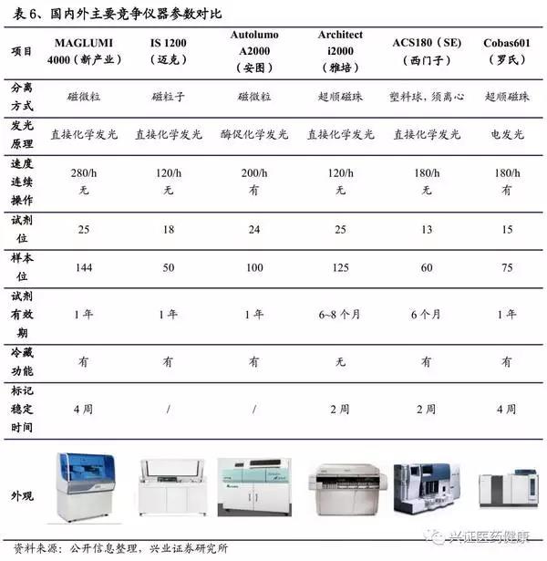 從以上進程可看出,技術(shù)到位、價格優(yōu)勢以及找準(zhǔn)市場切入口是其完成進口替代的關(guān)鍵。發(fā)光行業(yè)與生化行業(yè)有其區(qū)別,發(fā)光本質(zhì)為免疫反應(yīng),各廠家的技術(shù)平臺完全不同,為保證結(jié)果的準(zhǔn)確性和穩(wěn)定性,將迫使檢驗人員使用同一廠家提供的試劑和分析儀。在各大醫(yī)院對于各個項目的檢查都基本專機專用,未來也很難將其開放化。所以,在發(fā)光的進口替代進程中,試劑和儀器的一體化研發(fā)是必須的。國內(nèi)化學(xué)發(fā)光龍頭企業(yè),例如,新產(chǎn)業(yè)、安圖生物、邁克生物等都具備試劑和儀器的一體化研發(fā)能力。參考生化的替代道路,5年內(nèi)將爆發(fā)大規(guī)模進口替代。