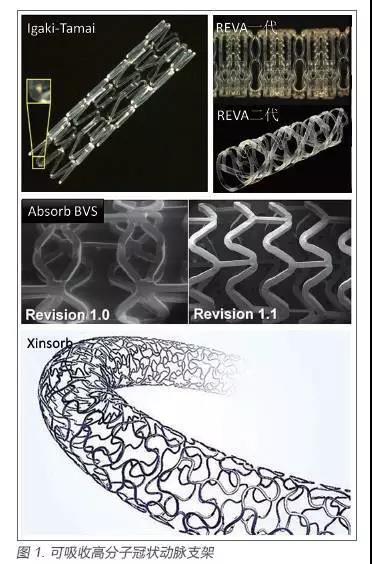 現(xiàn)階段開(kāi)發(fā)應(yīng)用的較大的產(chǎn)品有:日本Igaki Medical Planning 公司研發(fā)的Igaki-Tamai(PLLA)支架,美國(guó)Abbott Vascular 公司的BVS(PLLA)血管支架,Reva Medical 公司研發(fā)的REVA(PC)支架,以及我國(guó)山東華南生物科技有限公司的Xinsorb 支架(圖1)。