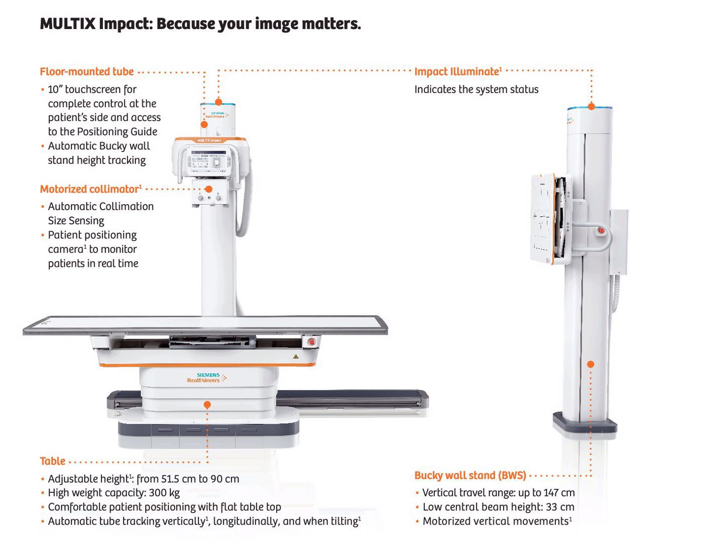 2019年1月21日,美國食品和藥物管理局(FDA)批準了西門子醫(yī)療保健公司的Multix Impact,這是一種價格合理的地板安裝式數(shù)字放射成像(DR)系統(tǒng),可擴展高質(zhì)量成像的使用范圍并增強患者體驗。