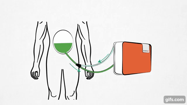 據(jù)報道,由AWAK科技公司研發(fā)的世界首個可穿戴、便攜式腹膜透析裝置,內(nèi)部使用了新研發(fā)的吸附技術(shù),體積小巧,重量不到2公斤,方便患者隨身攜帶,隨意走動,能夠進(jìn)行實時透析。