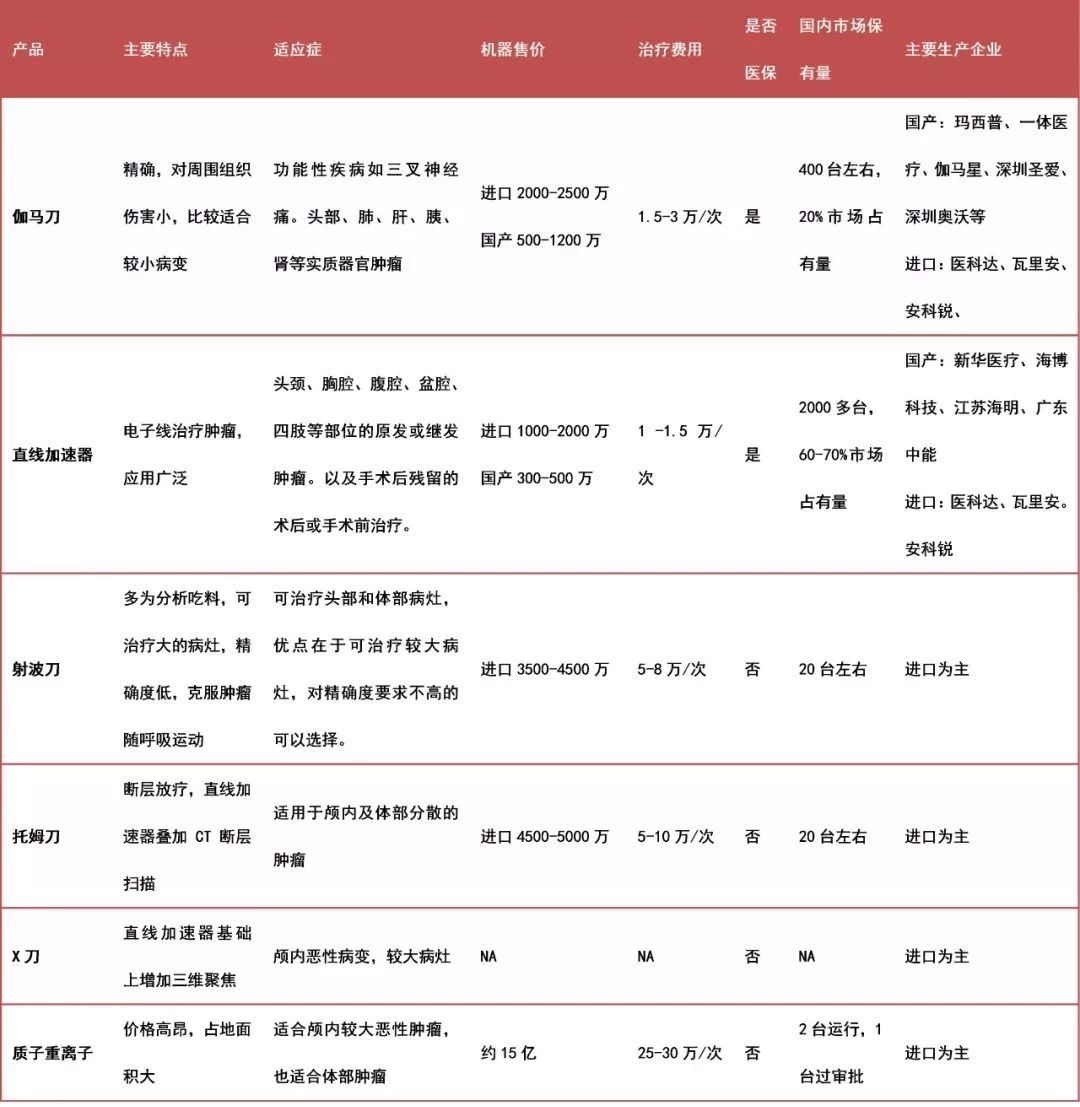 目前的放射治療技術包括伽瑪?shù)?、射波刀、托姆刀、質子重離子、EDGE(速鋒刀)無創(chuàng)手術系統(tǒng)。各技術的特點如下。