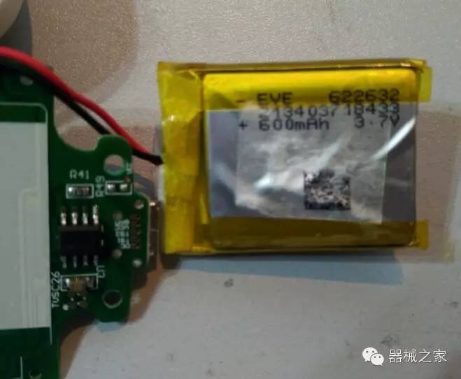 故可知:產(chǎn)品藍(lán)牙廣播間隔(Interval)160ms,手機(jī)連接需用時(shí)320~540ms,可以看出,脈搏波設(shè)置的廣播間隔很短,可以設(shè)置這么短間隔,可能是因?yàn)閺S商使用了一塊容量相對較大的電池吧。電池使用的是聚合物鋰電池622632型號,容量600mAh。