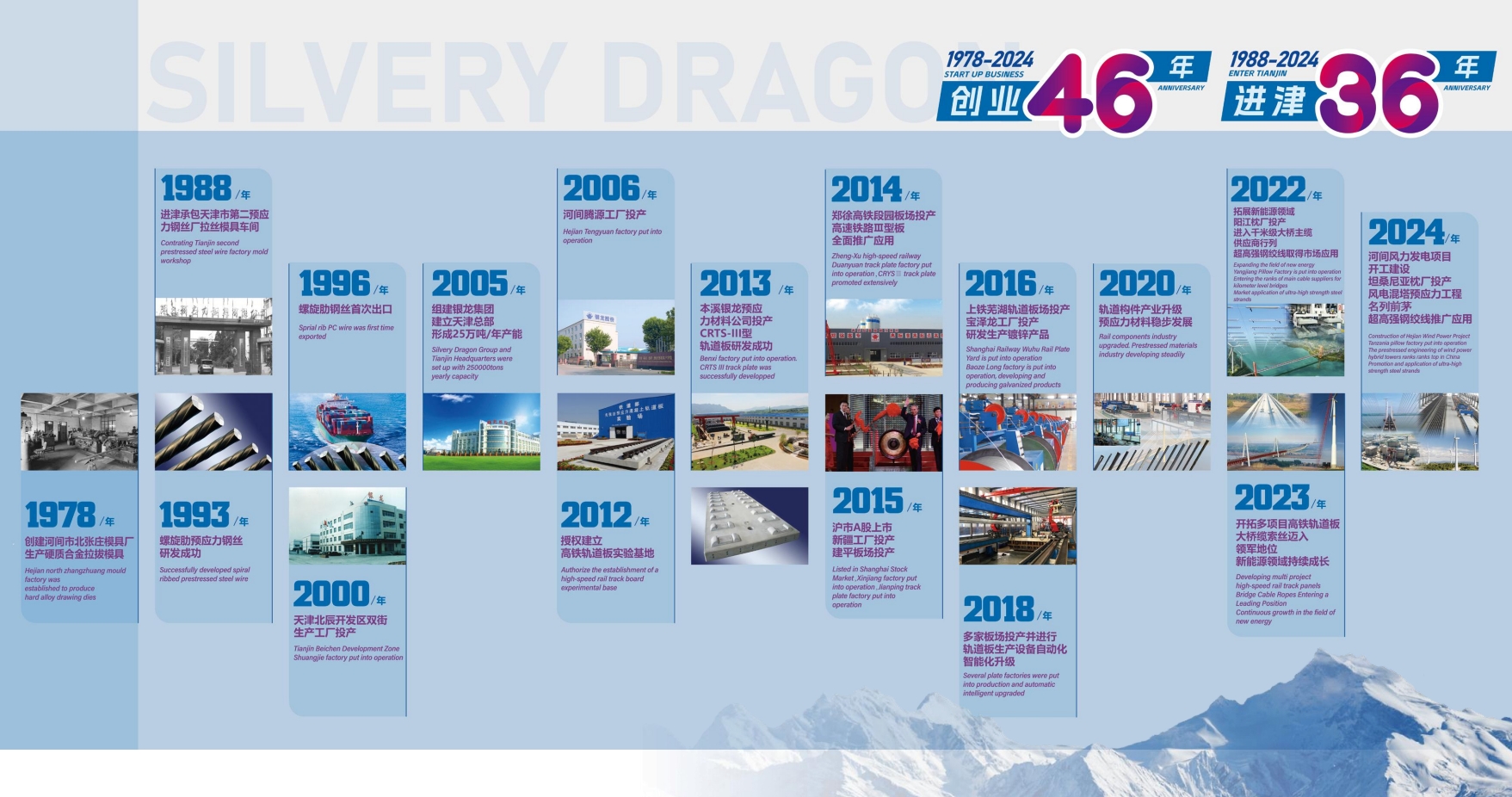 2015年,銀龍股份于2月27日在滬市A股成功上市,新疆銀龍預(yù)應(yīng)力材料有限公司成立,銀龍軌道建平軌道板場順利投產(chǎn)。